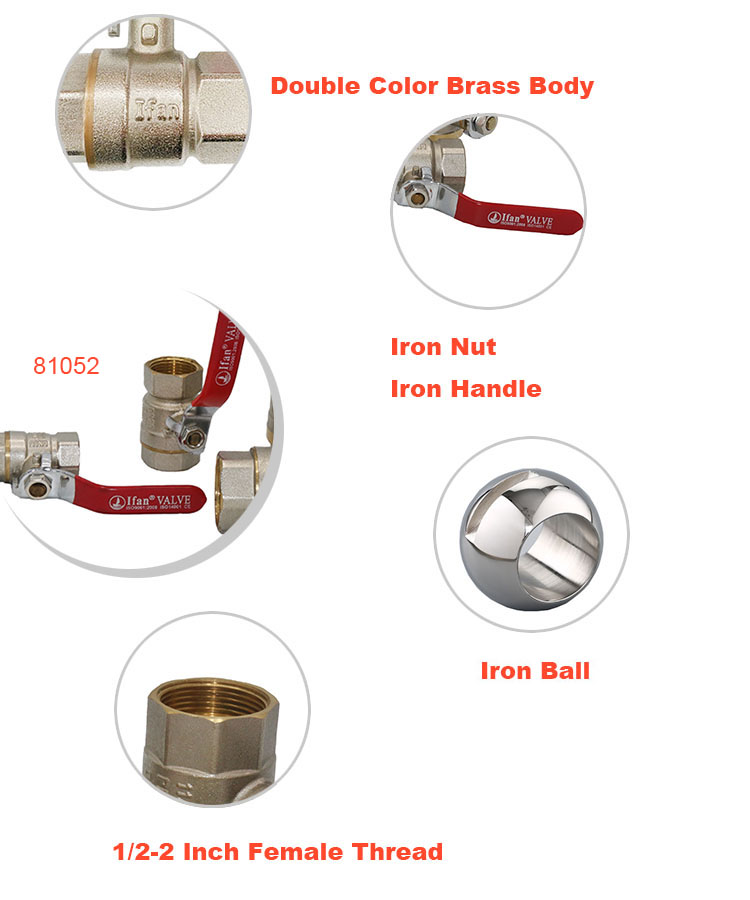 Forged Water 2 Brass Ball Valve Double Female Thread Red Level Long Handle Images |